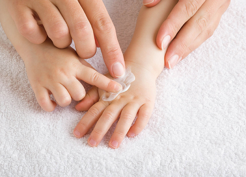 如果孩子的皮膚長了凍瘡,不妨為孩子塗抹含維生素E等促進血液循環成分的保濕霜,並配合按摩護理。