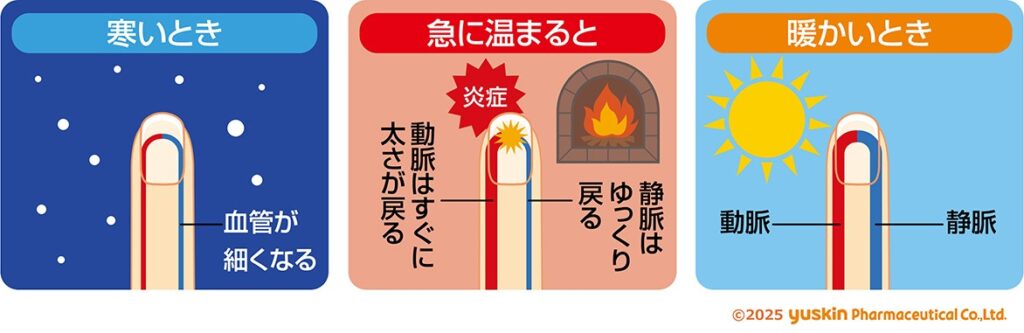 當白天气溫在 5℃左右、單日溫差達 10℃左右時,凍瘡也更容易發作。溫差過大時,身體為調節體溫,會讓血管反覆收縮與擴張,最終造成血液循環變差,身體末梢部位出現紅腫的症狀。
